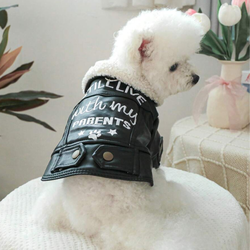 Turn your pup into a true trendsetter with the PETSIN faux leather jacket. Designed for small dogs, this stylish moto-inspired coat features snap-button sleeves, bold lettering, and a comfy inner lining. Whether it's for a photoshoot or chilly weather, this jacket brings serious attitude.