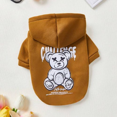 PETSIN 1pc Cute Bear Printed Street Style Hoodie In Brown With Pet Pattern